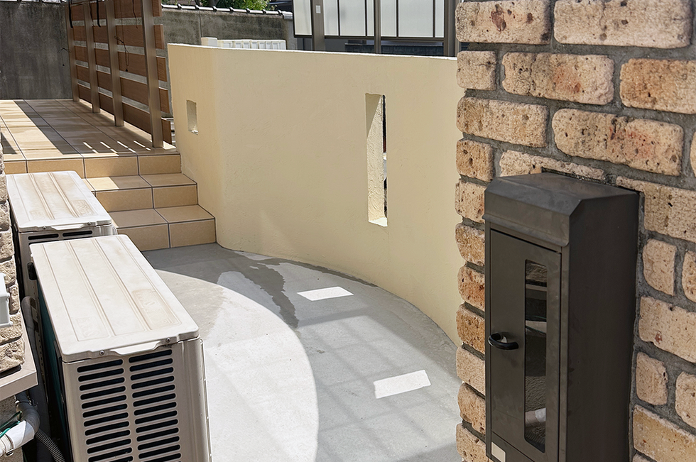 ・室外機の下には砂利を敷き、新しいコンクリートにカビや苔がつきにくいよう仕上げました。